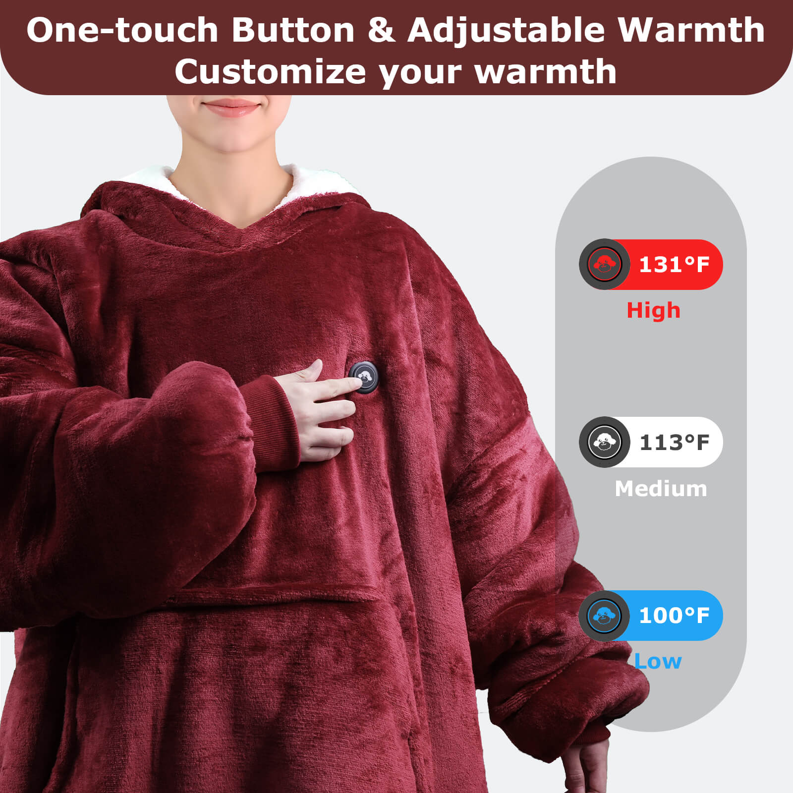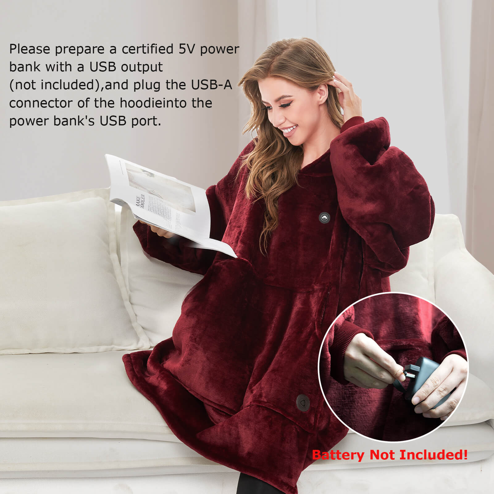 Burgundy Heated Wearable Blanket Hoodie for Adults
